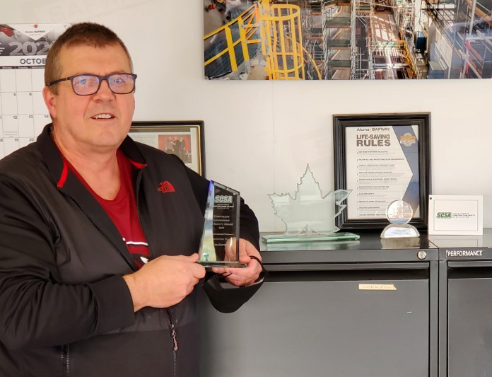 “This award demonstrates our commitment to continually raising the bar and leading our industry in safety,” said Steve Wilson, vice president of Global Environmental Health and Safety (EHS) for BrandSafway. “Excellence in safety doesn’t just happen. It takes a commitment to our Five Pillars of Safety and living and breathing safety 24/7. I would like to take this opportunity to thank the SCSA for their partnership and to congratulate Justin Lasnier, the regional safety manager, Don Black (pictured in photo), Saskatchewan branch manager, and all of our dedicated trades workers in Saskatchewan for this outstanding achievement.”